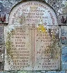 - Prosper Dufeu, né le à Champeaux, caporal au 1er régiment d'infanterie coloniale, mort des suites de ses blessures le à Servon-Melzicourt (Marne