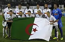 Équipe du MC Alger qui remporta le triplé de Coupe d'Afrique - Championnat - Coupe d'Algérie à l'issue de la saison 1975-1976