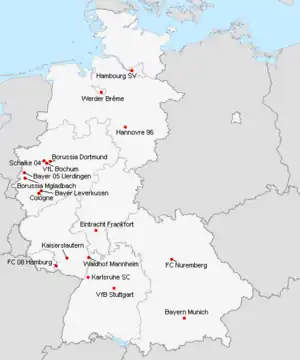 | FC Nuremberg | Städtisches Stadion | 56 500 | Nuremberg |