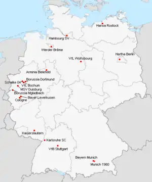 | Borussia Dortmund | 3-2 | 0-1 | 0-2 | 1-2 | 3-0 | 2-2 | 0-1 | 3-2 | 3-0 | 2-2 | 3-0 | 2-3 | 2-2 | 3-1 | 5-2 | 2-1 | 2-2 | |