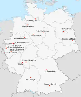 | Schalke 04 | Veltins-Arena | 61 673 | Gelsenkirchen |