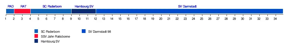 | Paderborn | 1 | 6 | 3 | 1 | 1 | 1 | 1 | 1 | 2 | 3 | 3 | 2 | 2 | 3 | 4 | 5 | 6 | 5 | 5 | 4 | 4 | 4 | 4 | 4 | 6 | 5 | 6 | 6 | 4 | 4 | 6 | 4 | 5 | 6 |