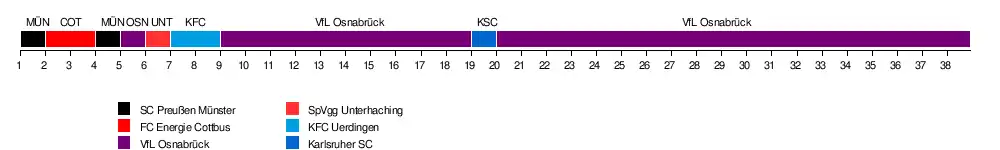 | Münster | 1 | 8 | 3 | 1 | 6 | 9 | 13 | 7 | 7 | 4 | 3 | 2 | 2 | 2 | 2 | 2 | 6 | 6 | 6 | 7 | 7 | 7 | 8 | 7 | 8 | 7 | 8 | 11 | 12 | 8 | 11 | 11 | 7 | 6 | 6 | 6 | 7 | 8 |