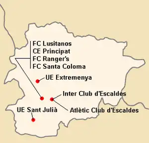 En raison du peu de stades se trouvant sur le territoire d'Andorre, les matchs sont joués exclusivement à l'Estadi Nacional d'Aixovall d'une capacité de 1 500 places.