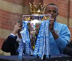 Le trophée de la Premier League, tenu par le capitaine de Manchester City Vincent Kompany en 2012.