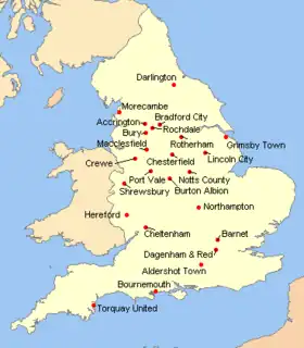| Promus en League One | Notts County Bournemouth AFC Rochdale Dagenham & Redbridge |