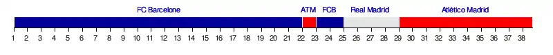 | Atlético Madrid | 3 | 2 | 2 | 2 | 2 | 2 | 2 | 2 | 2 | 2 | 2 | 2 | 2 | 2 | 2 | 2 | 2 | 2 | 2 | 2 | 2 | 1 | 3 | 3 | 3 | 3 | 2 | 2 | 1 | 1 | 1 | 1 | 1 | 1 | 1 | 1 | 1 | 1 |