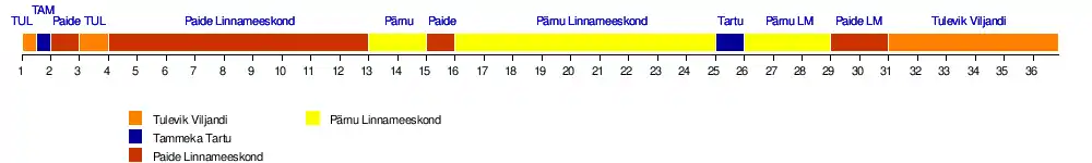 | Paide | 8 | 10 | 8 | 10 | 10 | 10 | 10 | 10 | 10 | 10 | 10 | 10 | 9 | 9 | 10 | 8 | 9 | 9 | 9 | 9 | 8 | 8 | 7 | 7 | 7 | 7 | 8 | 9 | 10 | 10 | 9 | 9 | 8 | 7 | 7 | 7 |