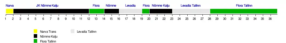 | N. Kalju | 3 | 1 | 1 | 1 | 1 | 1 | 1 | 1 | 1 | 1 | 1 | 2 | 2 | 1 | 1 | 3 | 3 | 3 | 2 | 1 | 1 | 1 | 2 | 2 | 3 | 3 | 3 | 3 | 3 | 3 | 3 | 3 | 3 | 3 | 3 | 3 |