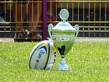 Trophée des Grand Prix Series avec le ballon de l'édition 2015.