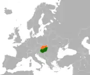 ![]() La Slovaquie (en orange) est au nord de la Hongrie (en vert). |