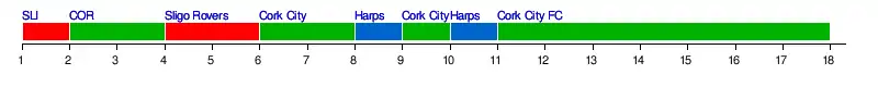 | Cork City FC | 6 | 10 | 9 | 9 | 9 | 10 | 10 | 9 | 10 | 9 | 10 | 10 | 10 | 10 | 10 | 10 | 10 | 10 |