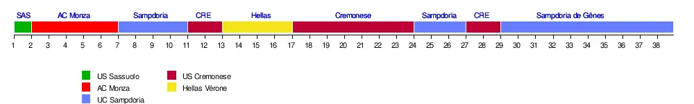 | Sampdoria | 18 | 16 | 18 | 18 | 18 | 19 | 20 | 20 | 20 | 20 | 18 | 18 | 19 | 19 | 19 | 18 | 19 | 19 | 19 | 19 | 19 | 19 | 19 | 20 | 20 | 20 | 19 | 19 | 20 | 20 | 20 | 20 | 20 | 20 | 20 | 20 | 20 | 20 | 37 | |