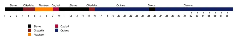 | AC Pistoiese | Renvoi | 27 septembre 2001 (J05)[8] | 19e | 27 septembre 2001 (J06) | ||