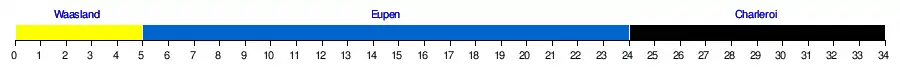 | Sporting Charleroi | 4-1 | 0-3 | 2-2 | 4-2 | 1-0 | 3-0 | 1-1 | 1-0 | 2-2 | 4-0 | 3-1 | 2-1 | 1-2 | 2-0 | 1-0 | 3-0 | 2-0 | |
