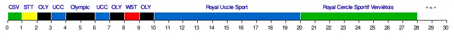 | SRU Verviers | 0-1 | 1-1 | 1-2 | 2-1 | 0-0 | 2-3 | 1-0 | 1-0 | 2-5 | 3-3 | 1-1 | 2-1 | 1-0 | 2-1 | 3-2 | |