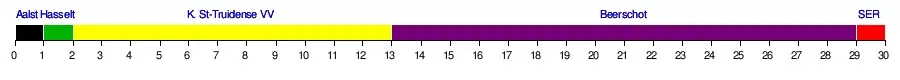 | Résultats (▼dom., ►ext.) | BEE | BSP | BOO | CHA | DIE | AAL | HAR | HAS | LOU | OUD | RJB | RCM | SER | STT | SLE | WIT |