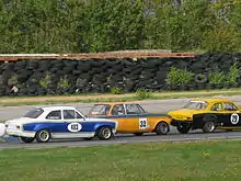 Deux Ford Escort RS encadrant ici une BMW 2002 Ti (hors championnat belge).