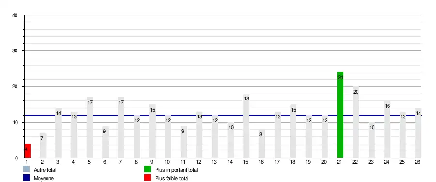 | Journées → | 1 | 2 | 3 | 4 | 5 | 6 | 7 | 8 | 9 | 10 | 11 | 12 | 13 | 14 | 15 | 16 | 17 | 18 | 19 | 20 | 21 | 22 | 23 | 24 | 25 | 26 | En tête | Relégable |