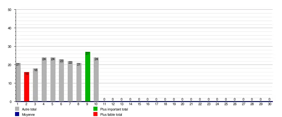 | Journée → | 1 | 2 | 3 | 4 | 5 | 6 | 7 | 8 | 9 | 10 | 11 | 12 | 13 | 14 | 15 | 16 | 17 | 18 | 19 | 20 | 21 | 22 | 23 | 24 | 25 | 26 | 27 | 28 | 29 | 30 | 1er | rel. |