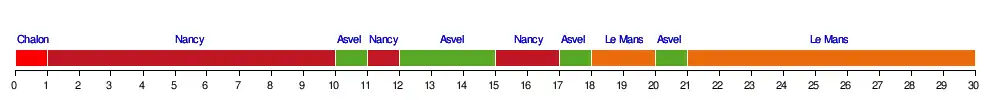 | Le Mans | 94-87 | 70-59 | 82-73 | 93-84 | 67-60 | 75-81 | 90-65 | 83-69 | 90-81 | 74-67 | 71-75 | 78-73 | 96-93 | 85-69 | 63-53 | |