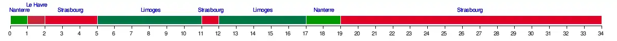 | Nanterre | 1 | 6 | 4 | 4 | 3 | 3 | 4 | 4 | 4 | 4 | 3 | 3 | 3 | 2 | 2 | 2 | 2 | 1 | 1 | 2 | 2 | 2 | 2 | 2 | 2 | 2 | 2 | 2 | 2 | 2 | 2 | 2 | 2 | 2 | 3 | - |