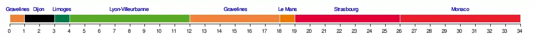 | Le Mans | 6 | 13 | 15 | 12 | 10 | 6 | 3 | 4 | 4 | 4 | 6 | 5 | 4 | 4 | 3 | 4 | 3 | 2 | 1 | 2 | 5 | 4 | 6 | 5 | 6 | 3 | 3 | 2 | 2 | 4 | 3 | 3 | 3 | 3 | 1 | |