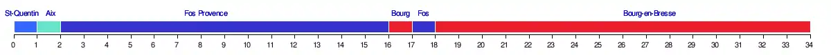 | Fos Provence | 3 | 3 | 1 | 1 | 1 | 1 | 1 | 1 | 1 | 1 | 1 | 1 | 1 | 1 | 1 | 1 | 2 | 1 | 2 | 2 | 2 | 2 | 2 | 2 | 2 | 2 | 2 | 2 | 2 | 2 | 2 | 2 | 2 | 2 | 15 | - |
