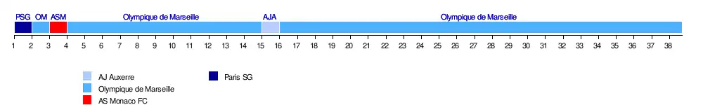 | Olympique de Marseille | 1-0 | 2-0 | 3-1 | 2-1 | 0-1 | 2-0 | 7-0 | 3-0 | 1-0 | 2-0 | 6-2 | 6-0 | 1-0 | 2-1 | 4-1 | 3-1 | 0-0 | 3-3 | 1-0 | |