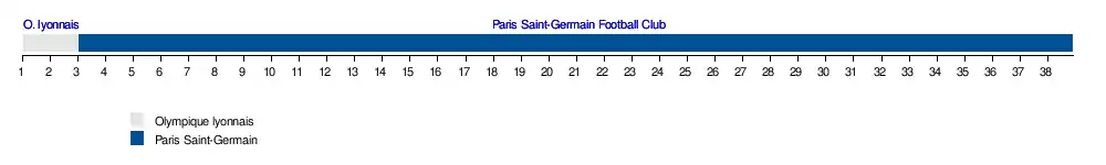 - Plus grande série de victoires[20] : 9 matchs pour le Paris Saint-Germain entre les 23e et 31e journées.
