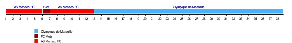 | Olympique de Marseille | 2-0 | 5-0 | 2-0 | 2-0 | 1-1 | 1-0 | 0-0 | 2-0 | 1-1 | 0-0 | 4-0 | 4-0 | 4-2 | 0-0 | 5-1 | 2-0 | 2-2 | 0-1 | 2-0 | |