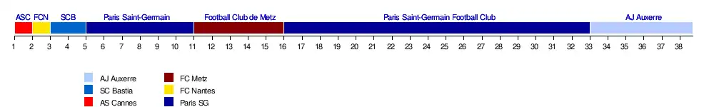 | Paris SG | 3-1 | 5-1 | 3-0 | 2-1 | 1-1 | 1-1 | 2-0 | 1-0 | 0-1 | 2-0 | 0-0 | 2-3 | 2-1 | 2-3 | 5-0 | 3-2 | 1-1 | 4-0 | 2-0 | |
