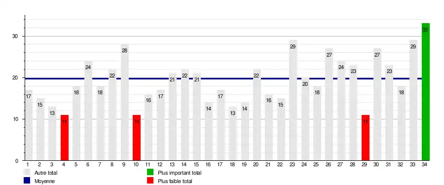 | Avranches | 1 | 4 | 2 | 3 | 4 | 8 | 8 | 11 | 9 | 10 | 10 | 10 | 11 | 9 | 10 | 11 | 13 | 13 | 15 | 15 | 13 | 12 | 11 | 10 | 7 | 8 | 9 | 10 | 10 | 9 | 8 | 6 | 8 | 8 | 3 | 2 |