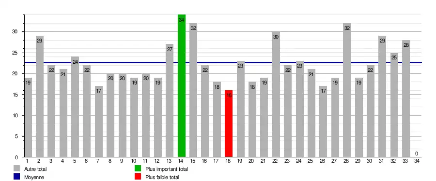 - Plus mauvaise attaque : Nîmes et Marignanes, 18 buts