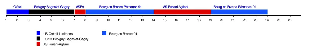 | 5 | US Créteil-Lusitanos | 34 | 24 | 8 | +2 |