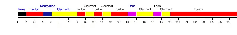 | Clubs | BAY | UBB | CAB | CAS | CLE | GRE | LOU | MHR | USO | SFR | RAC | ROC | RCT | TOU |