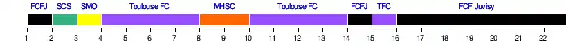 | Toulouse FC | 7 | 3 | 2 | 1 | 1 | 1 | 1 | 2 | 2 | 1 | 1 | 1 | 1 | 2 | 1 | 2 | 2 | 2 | 2 | 2 | 2 | 2 |