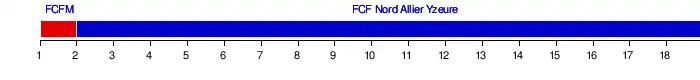 | FCF Nord Allier Yzeure | 4 | 1 | 1 | 1 | 1 | 1 | 1 | 1 | 1 | 1 | 1 | 1 | 1 | 1 | 1 | 1 | 1 | 1 |