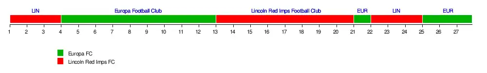 | Lincoln Red Imps FC | 1 - 0[11] | 1 - 3 | 0 - 3[12] | |