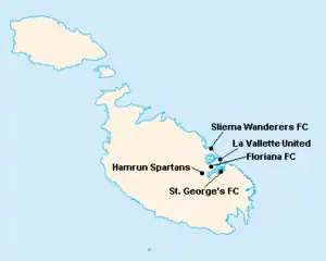 L'île de Malte étant relativement petite, les clubs évoluent tous au stade National Ta'Qali (17 400 places). Certains cependant ont leur propre enceinte qu'ils peuvent éventuellement utiliser.