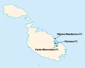 L'île de Malte étant relativement petite, les clubs évoluent tous au stade National Ta'Qali (17 400 places). Certain cependant ont leur propre enceinte qu'ils peuvent éventuellement utiliser.