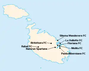 L'île de Malte étant relativement petite, les clubs évoluent tous au stade National Ta'Qali (17 400 places). Certain cependant ont leur propre enceinte qu'ils peuvent éventuellement utiliser.