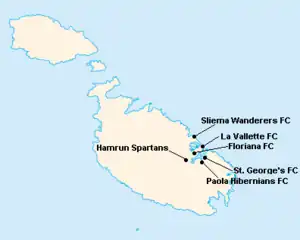 L'île de Malte étant relativement petite, les clubs évoluent tous au stade National Ta'Qali (17 400 places). Certains cependant ont leur propre enceinte qu'ils peuvent éventuellement utiliser.
