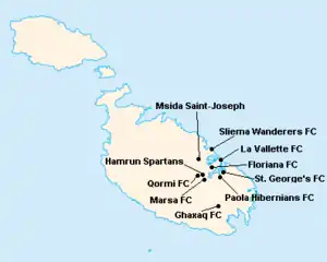 L'île de Malte étant relativement petite, les clubs évoluent tous au stade National Ta'Qali (17 400 places). Certain cependant ont leur propre enceinte qu'ils peuvent éventuellement utiliser.