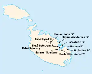 L'île de Malte étant relativement petite, les clubs évoluent tous au stade National Ta'Qali (17 400 places). Certain cependant ont leur propre enceinte qu'ils peuvent éventuellement utiliser.