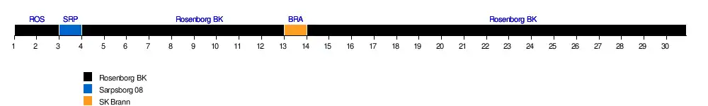 | Rosenborg | 1 | 1 | 2 | 1 | 1 | 1 | 1 | 1 | 1 | 1 | 1 | 1 | 2 | 1 | 1 | 1 | 1 | 1 | 1 | 1 | 1 | 1 | 1 | 1 | 1 | 1 | 1 | 1 | 1 | 1 | 28 | |