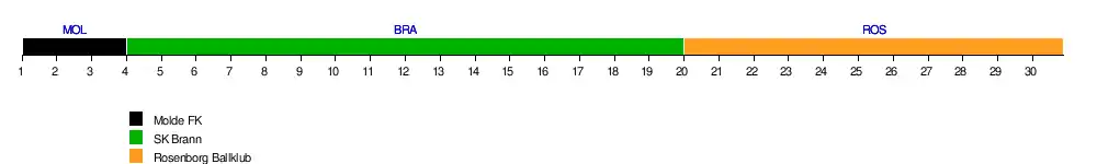 | Brann | 4 | 2 | 3 | 1 | 1 | 1 | 1 | 1 | 1 | 1 | 1 | 1 | 1 | 1 | 1 | 1 | 1 | 1 | 1 | 2 | 2 | 2 | 2 | 2 | 2 | 2 | 2 | 2 | 3 | 3 | 16 | |