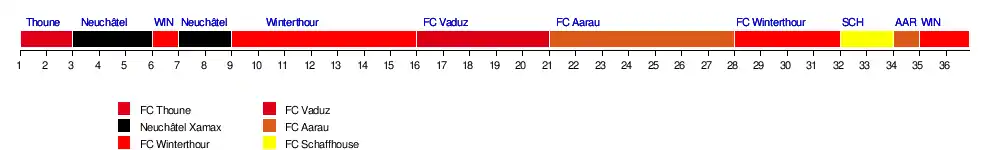 | Winterthour | 7 | 4 | 5 | 3 | 2 | 1 | 2 | 2 | 1 | 1 | 1 | 1 | 1 | 1 | 1 | 2 | 2 | 3 | 2 | 3 | 2 | 2 | 2 | 2 | 2 | 2 | 2 | 2 | 1 | 1 | 1 | 1 | 3 | 3 | 2 | 1 | 13 | 14 | |