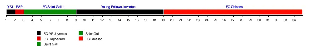 | FC Zurich II | 5 | 5 | 6 | 13 | 13 | 10 | 13 | 11 | 13 | 15 | 15 | 14 | 16 | 16 | 16 | 16 | 15 | 14 | 14 | 14 | 14 | 13 | 14 | 12 | 12 | 12 | 11 | 11 | 11 | 11 | 12 | 13 | 12 | 12 |