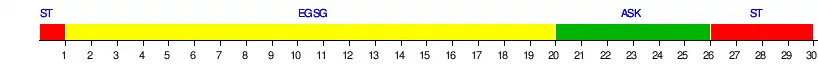 | ST | 16 | 15 | 14 | 14 | 15 | 13 | 13 | 14 | 14 | 14 | 14 | 15 | 14 | 14 | 14 | 14 | 14 | 14 | 14 | 14 | 14 | 14 | 14 | 15 | 16 | 15 | 16 | 16 | 16 | 16 | 28 | |